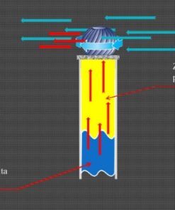 Per sua natura l’aspiratore eolico ruotando crea una depressione all’interno della canna in questo modo i gas vengono spinti dalla pressione alla base del camino verso l’esterno.