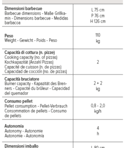 Dimensioni barbecue L 75 • P 76 • H 126 cm