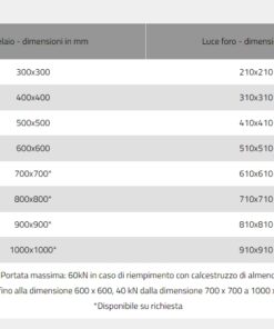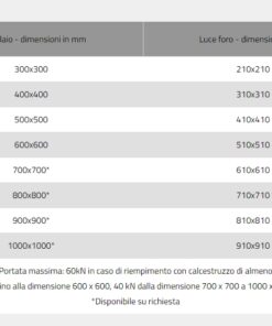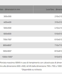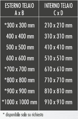 Le misure del telaio corrispondono alle misure standard dei vari pozzetti in commercio