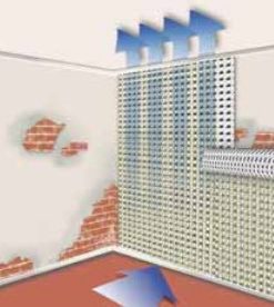 Favorisce l’eliminazione dell’umidità di risalita. Permette di avere intonaci asciutti. Crea una contro-parete ventilata e protettiva per l’edificio.