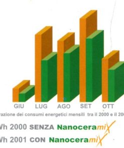 RIDUZIONE DEI COSTI ENERGETICI. Nanoceramix riduce le spese per aria condizionata e riscaldamento. L’utilizzo di Nanoceramix consente di abbattere i costi mensili relativi al consumo energetico fino ad oltre il 20% ! Nanoceramix mescolato alla pittura, agisce come uno strato di isolante extra, rendendo la casa più efficiente dal punto di vista energetico. Test effettuati in tutto il mondo su situazioni reali, dimostrano in maniera evidente l’abbassamento dei consumi grazie all’utilizzo di Nanoceramix.