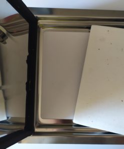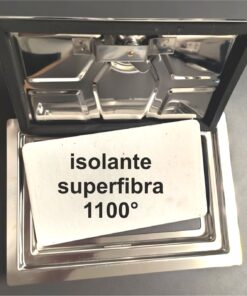 La parete interna è asportabile e fa da isolamento termico per mezzo di un materassino sp. 6 mm in fibra di vetro ecologico resistente a 1000° Celsius.