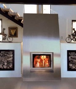 La forma moderna di un camino con tutto il suo comfort e la velocità di riscaldamento con il rilascio costante di calore di una vera stufa ad accumulo.