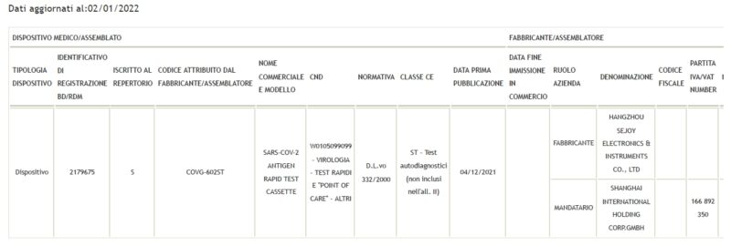 STRUMENTAZIONE DIAGNOSTICA VENDUTA IN ESENZIONE IVA IN OTTEMPERANZA ART 1 C. 452 LEGGE 178/2020
