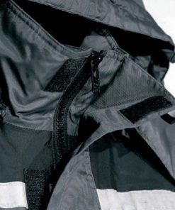 Tuta multi-tasche in nylon Oxford 100%, interno spalmato in PVC. Cuciture saldate e nastrate, trapuntata, con cappuccio staccabile, cerniera sotto l’ascella, velcro sul lato esterno del pantalone per tutta la lunghezza, chiusura anteriore con cerniera e velcro, bande alta visibilità in varie parti della tuta, polsini e caviglie regolabili. Ginocchiere rinforzate con tasca per inserimento apposita imbottitura per proteggere le ginocchia