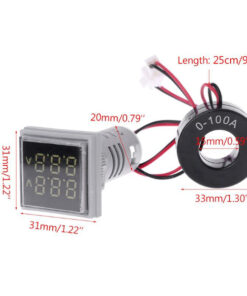 Voltmetro-Amperometro digitale a LED quadrato 22mm Indicatore misuratore di corrente Tester Misura AC 60-500V 0-100A